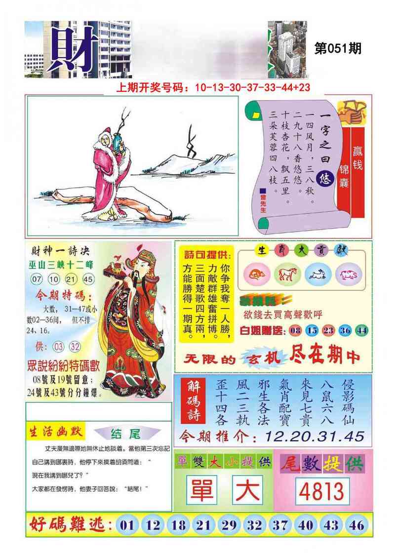 | 051期⑨码 | 04.10.02.44.09.11.36.39.05 | 开??准 |