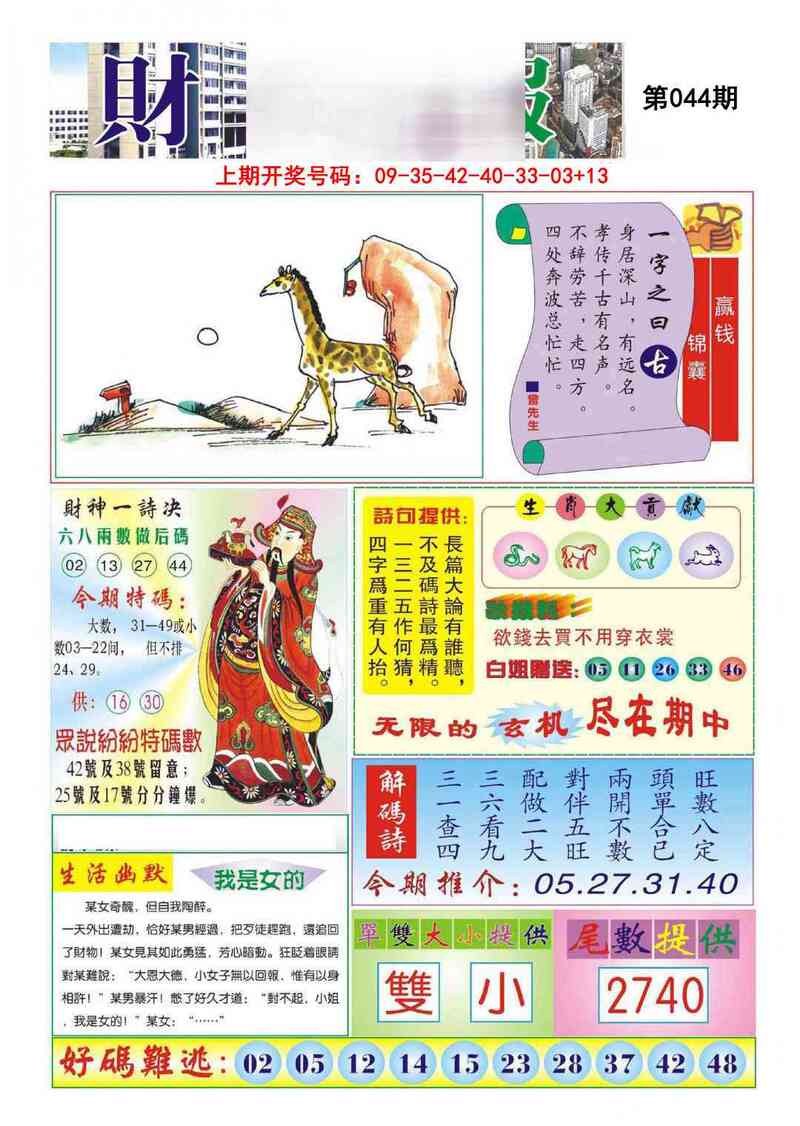 | 044期⑤码 | 38.35.41.34.16 | 开??准 |