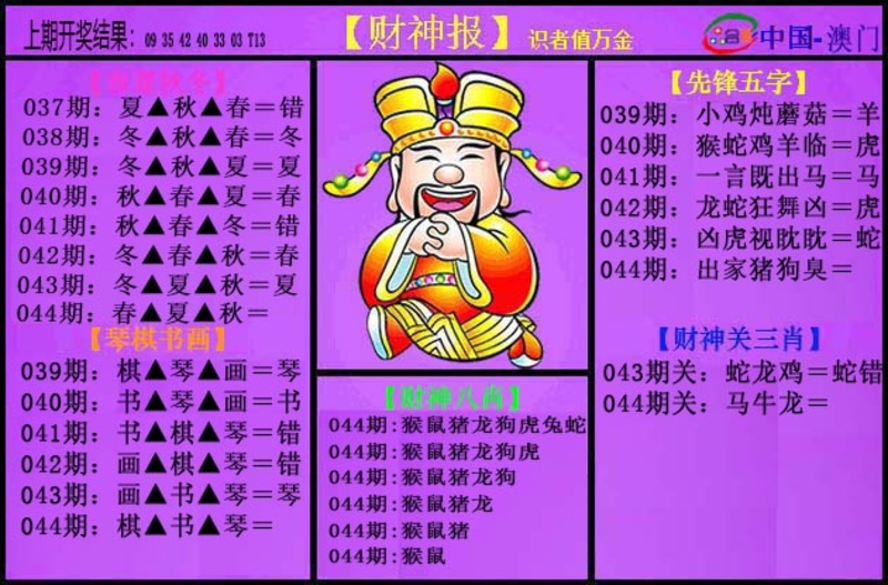 | 038期三肖 | 猪羊龙 | 开:鼠42 |