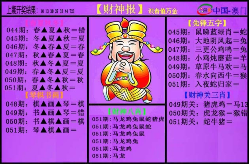 | 049期⑤码 | 44.33.31.02.13 | 开:马13 |